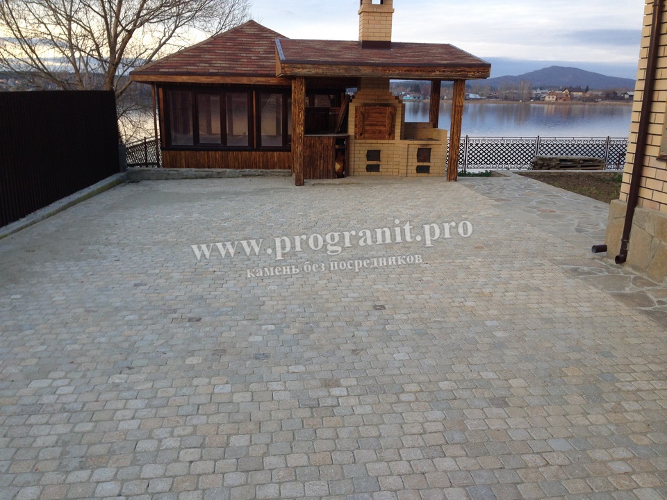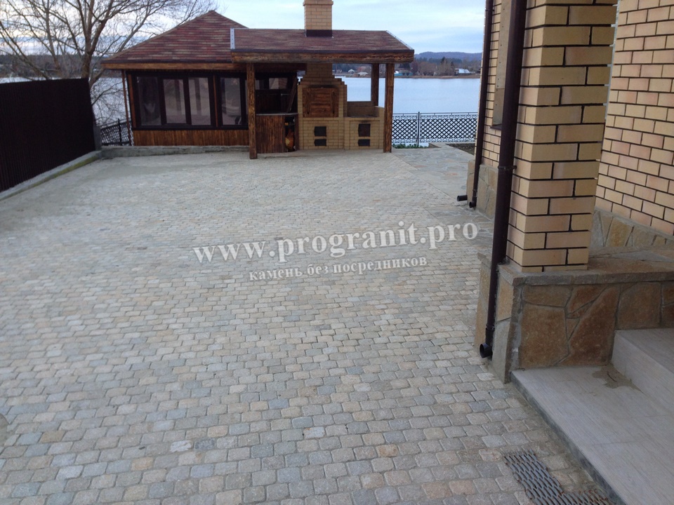 Мощение брусчаткой у частного дома
